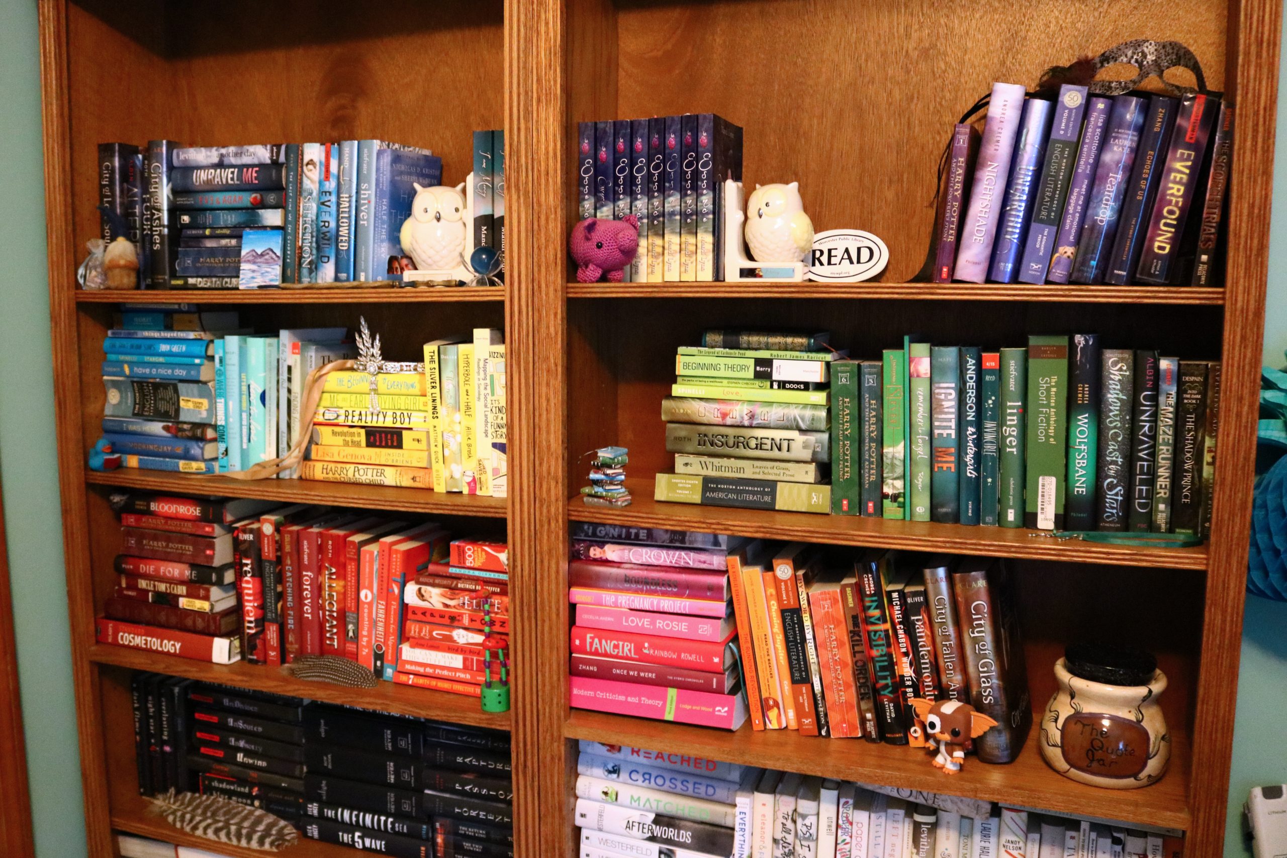 Watch me arrange my books into the prettiest of rainbows!