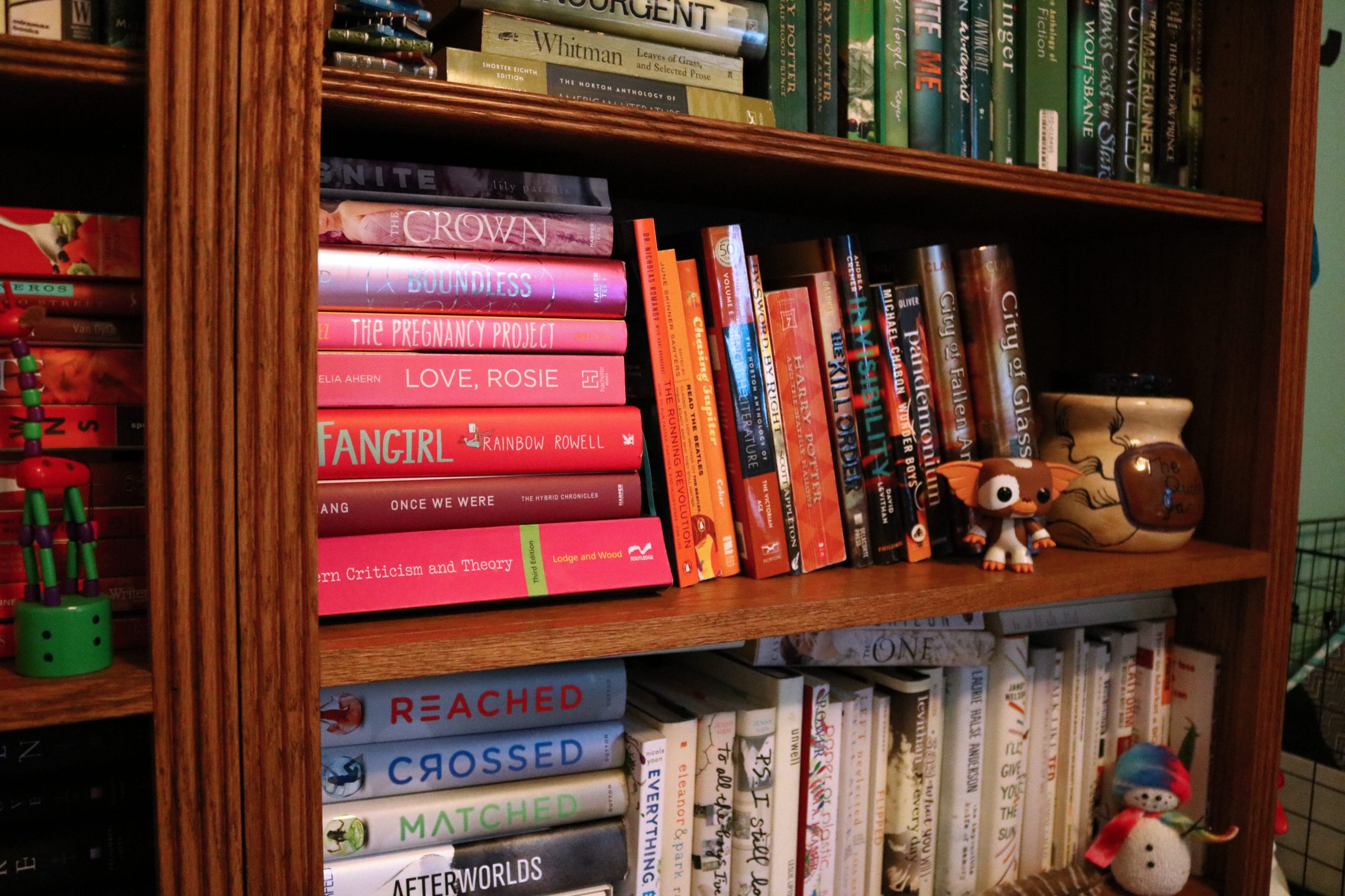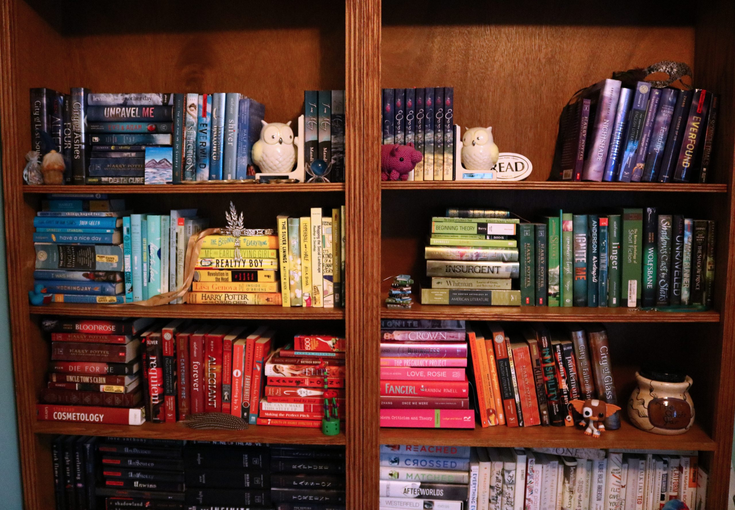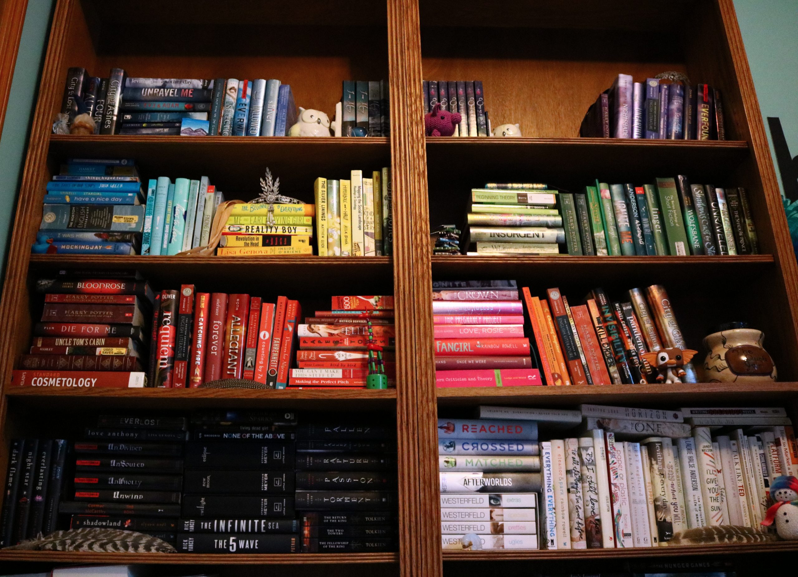 So a little a while ago I had arranged my books into a rainbow. And by a little awhile apparently, I mean 2015. How it already been almost two years since I arranged my books into a rainbow?? See my previous rainbow bookshelf.